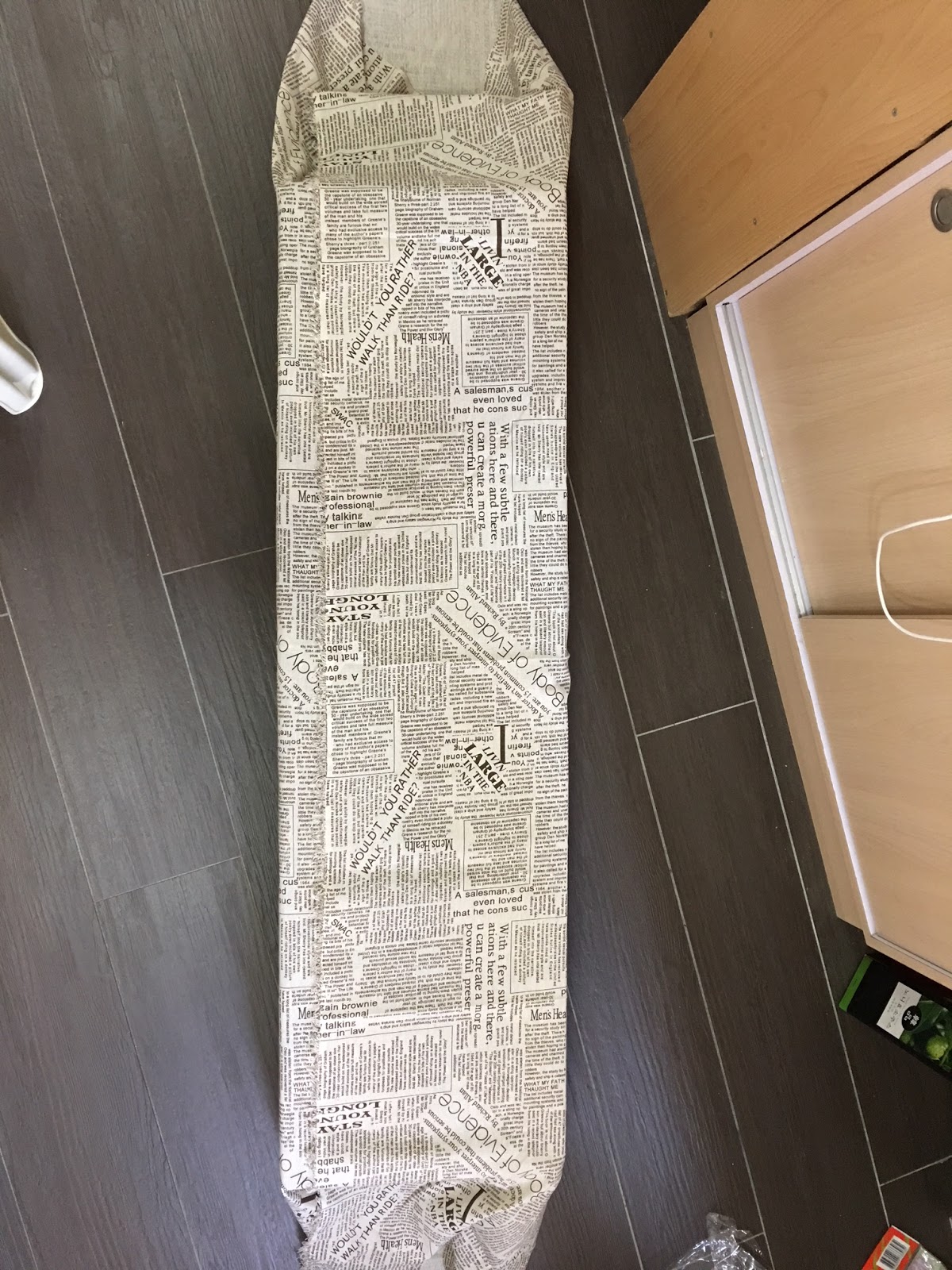 沒有專業的裁製,只是草草地以包禮物的方式,將之包起來,布料剛剛夠闊,用針線大針地縫合就完成了。這樣拆洗亦方便,不花太大功夫。